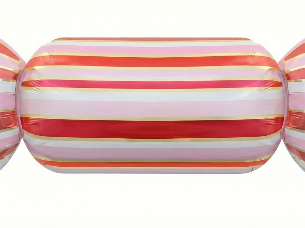בלון מיילר סוכרייה דגם פסים בגודל 105 ס"מ. הבלון בעל עיצוב יפהפה עם פסים בגווני ורוד, אדום וזהב, המעניקים לו מראה חגיגי ומרשים.