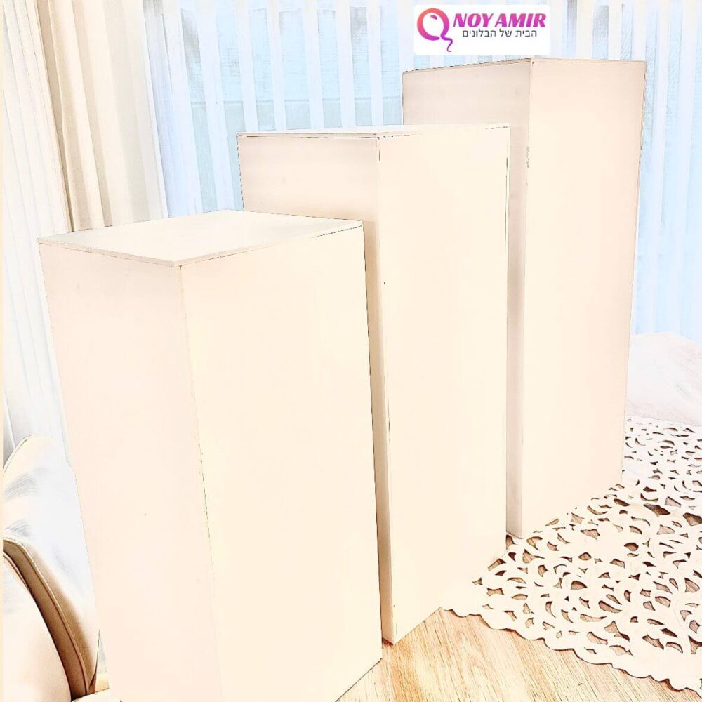 סט 3 במות מרובעות מחומר PVC בצבע לבן